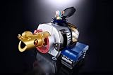 General Franky, the robot which played a pivotal role in the “One Piece Film Z” feature film, joins the Chogokin line-up! With the ability to transform and combine into a giant mecha, it is must have for not only One Piece fans, but any diecast robot aficionado. As a first issue exclusive bonus, collectors a detailed General Franky pamphlet. Set includes Kurosai FR-U IV and Brachio Tank V that transform and combine to form General Franky, as well as three figurines (2 Franky figures and one Chopper figure) for various piloting scenes. This deluxe set also includes vehicle and cockpit parts, “Fran Sword” weapon accessory, and a special display stand. Franky fans, unite!