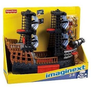 Fisher price Imaginext Black and Red Pirate Ship with 2 Figures