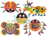 Create 5 colorful bugs out of paper plates. Just layer, stick and glue. Includes lots of stickers, buttons, googly eyes, pipe cleaners, pops tickle sticks, pom poms, paper punch outs, a chunky glue stick and easy instructions. Each bug is packaged individually, so you don't need to create them all in one sitting. Great as a beginning art activity. Age 3 – 6 years.