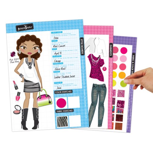 The Fashion Sticker Stylist album is a binder filled to the max with sections of runway ready fashion stickers! Choose your garments, shoes, accessories, cosmetics, fabric swatches, and more to create the perfect look for every occasion. Combine your stickers along with all your important model info on the formatted stylist sheets for a look that is fashionably fabulous. All of your stickers stay organized in the easy-to-carry spiral binder for styling on the go. This set includes a sticker stylist album filled with 700 fashion stickers that include puffy, foil and 3D stickers, and 20 pre-formatted stylist sheets.