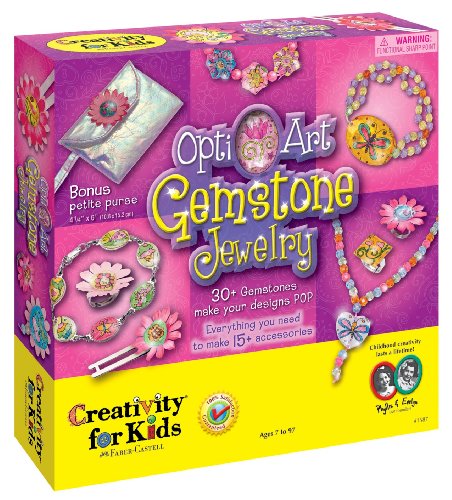 Combine cool paper patterns with faceted gemstones to create the most amazing eye-popping jewelry designs. This craft kit includes all the supplies needed to make a jewelry box full of necklaces, pins, rings, bracelets and hairclips. A bonus petite purse is included! All metal contents are compliant according to ASTM F963.