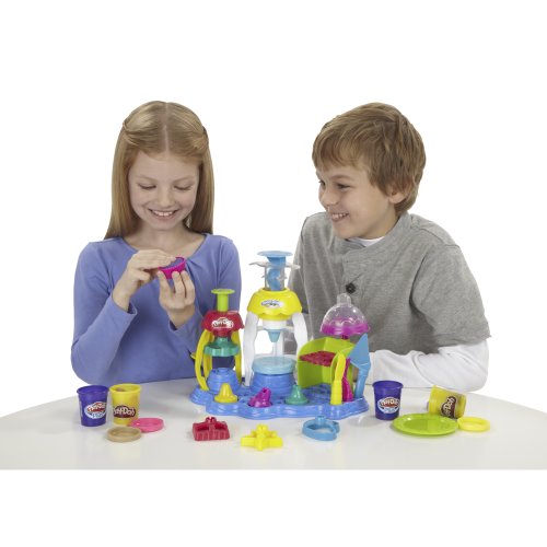 What’s more fun than making delicious-looking Play-Doh treats? Making the pretend frosting to go with them. The Frosting Fun Bakery playset lets you shape a cake with Play-Doh compound. The softer, smoother texture of Play-Doh Plus modeling compound makes it easier to squeeze so you can add beautiful flowers, stars and swirls to your creations. When you finish your pretend cake, set it on its stand so it can look like it belongs in a real bakery. Then smash it up and start all over.