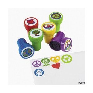 Peace Sign Stampers. Stamp out a peaceful message with our 1 1/2″ plastic stampers! Featuring 2 dozen stamps in in a variety of colors and styles including the recycle symbol, Earth, a peace sign, tree, heart and peace sign within a heart, our Peace Sign Stampers are perfect for Earth Day classroom activities and more. (2 dozen per unit)