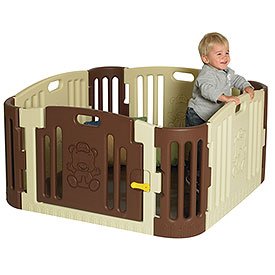 With the Baby Bear Play Zone from Children's Factory you control the play environment for your child while at the same time prevent them from wandering off. The Play Zone is made of molded plastic and provides a large, 46″ sq, play area that is also tall enough, 23.5″, to prevent them from climbing out. A latched gate opens and closes so that children will not have to be continuously picked up to be put in and out of the Play Zone relieving potential strain from doing so. The Baby Bear Play Zone is suitable for indoor and outdoor use and its squared frame can be setup in a safe, controlled environment of your choosing with whatever toys you provide. This also allows a parent to not worry about them getting into things they shouldn't or falling into objects in a room that could hurt them. This Play Zone is ideal for use with a soft activity mat (sold separately) to further protect them from injury if the ground they are playing on is hard. The Baby Bear Play Zone is also available in primary colors, sold separately.