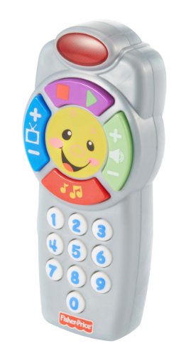 The Fisher-Price Laugh & Learn Click ‘n Learn Remote is baby's very own remote, with realistic styling, buttons to press, lively songs and light-up learning fun! Baby can click away to learn about numbers, opposites, colors, greetings, and first words, and sing along to four sung songs, too.