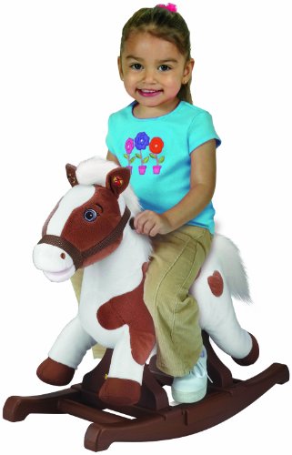 Children can enjoy a rocking, talking and singing pony! Tek Nek Rockin' Rider Talking Plush Painted Pony Rocker is a plush pony with a real looking mane, tail and embroidered eyes in three colors. Easy grip handles and nonslip footsteps provide comfortable seating.