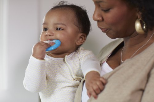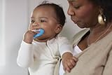 MAM Bite and Brush, soothes as well as cleans baby's first teeth. Soft Silicone bristles clean baby's first teeth while chewing and gently massages baby's gums for relief from teething pain. Textured ring shape is light and easy for baby to grab Blue. 3+ months.
