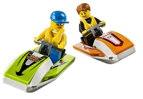 • Includes 2 minifigures with assorted accessories; Accessories include 2 life vests, a gas drum with pump and a gas can