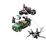 VenomTM has taken control of Nick Fury's S.H.I.E.L.D. flying car and is making a super-fast getaway. Send Spider-ManTM to the rescue in his cool Spider-Cycle! Help Spider-ManTM catch this venomous villain and return the car to the good guys! Watch out for Venom's vicious symbiont web attack! Use the folding wheels on both vehicles for the perfect high-speed pursuit in the air or on land. Includes 3 minifigures: Spider-ManTM, VenomTM, and Nick FuryTM with weapon.
