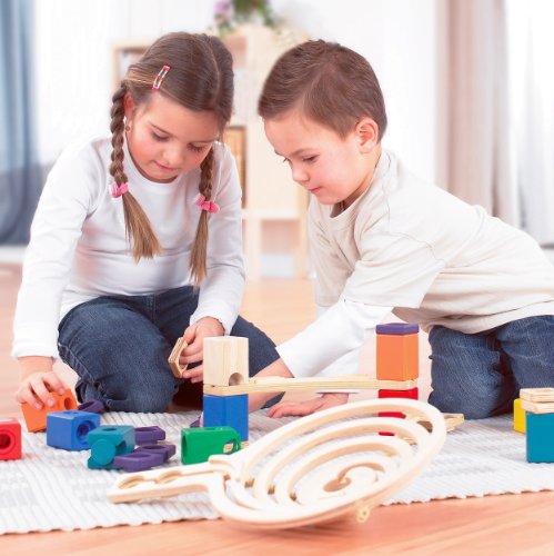 The Quadrilla Basic set is the perfect entrance into the world of marble runs. Playing with Quadrilla marble runs is certain to enhance 3-dimensional thinking, creativity, cause and effect and an understanding of how things work technically. The Quadrilla Basic Set offers room for extensions and combinations. Quadrilla is the Ultimate Marble Run Building Set. Contents: 49 pieces, 50 marbles, 1 book. Durable child safe paint finish and solid wood construction are hallmarks of Hape toys. Hape's toys stimulate children through every stage of development and help nurture and develop their natural abilities. All Hape products sold in North America meet or exceed all applicable safety standards.