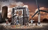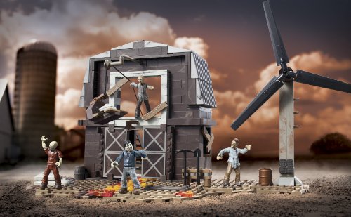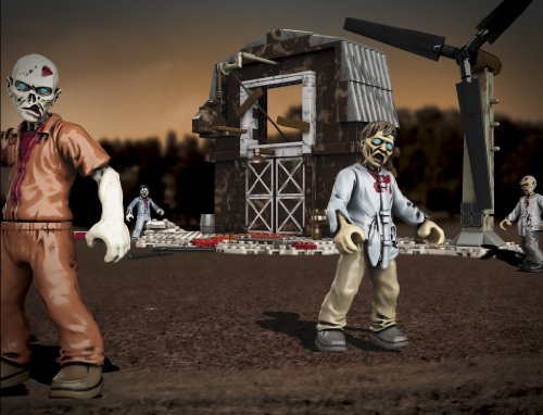 - Buildable Zombie Farm 17L x 8.5W x 9H Inch with two levels of display, action-reaction features and buildable windmill