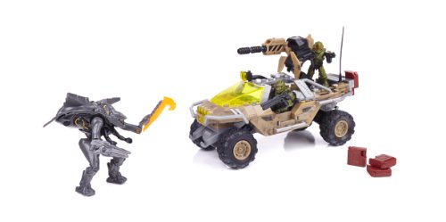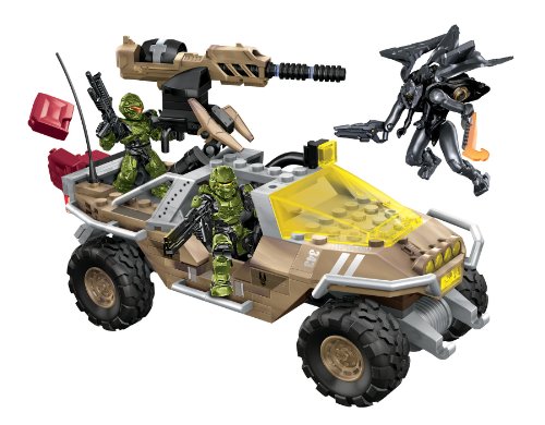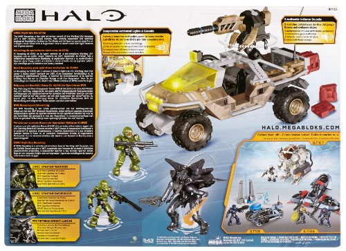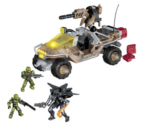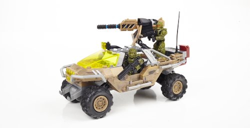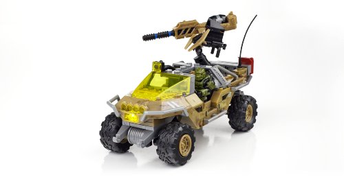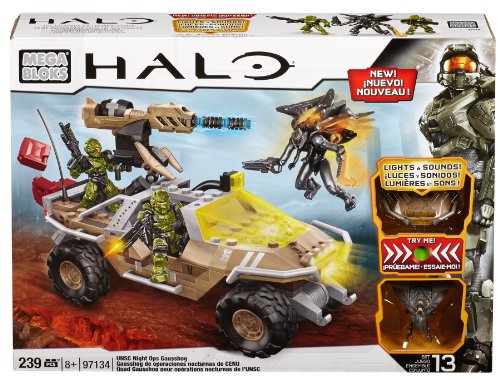 Establish your army, build and expand your units with the UNSC Night Ops Gausshog by Mega Bloks Halo! The UNSC Gausshog is the light anti-armor variant of the Warthog LRV. Equipped with a 360 rotating Gauss Cannon, real working suspension and specially engineered floodlights, the Spartan Pathfinder and his Spartan Warrior gunner open fire on a Knight Lancer armed with a Suppressor. Now in desert camo with light features and in-game sounds, the Mega Bloks UNSC Night Ops Gausshog lets you play more than ever before!Ideal for children ages 8 and up.Features: Buildable UNSC Gausshog with new in-game lights and sound! UNSC Troops: Spartan in Pathfinder green, Spartan in Warrior green Promethean Knight Lancer Weapons: Railgun, Shotgun, Suppressor, Hooked Sword