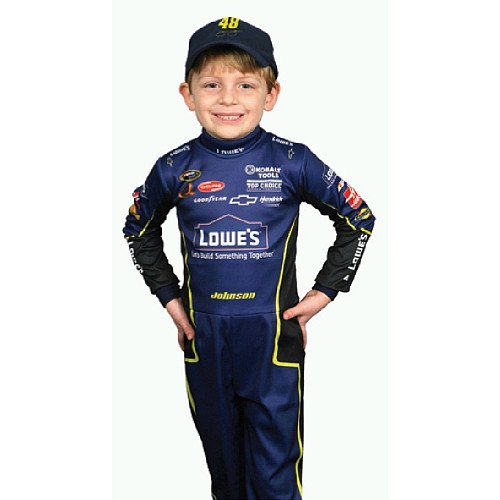 Gear up for the races with this officially licensed NASCAR uniform from Chase Authentics. The 100% polyester one-piece uniform boasts a VELCRO brand back closure as well as elastic cuffs at the wrists and ankles for a proper fit. The costume is roomy enough to be worn over clothing and features sublimated graphics for an authentic look! It comes with a cotton twill cap. Large 8-10, Medium 6-8, Small 4-6