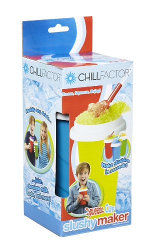 Chill Factor Squeeze cup slushy maker is a unique slushy maker which allows you to make delicious slushies in seconds! No ice, no blenders, no mess! So easy to use all you have to do is put it in the freezer, wait to freezer then add your preferred chilled drink and squeeze! Right before your eyes you will see slushy appear in seconds!