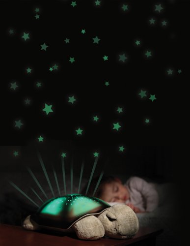Die Plüsch-Schildkröte projiziert bunte Sterne an Decke und Wände und verwandelt Ihr Zimmer in einen zauberhaften Sternenhimmel. Wählen Sie eine von drei besänftigenden Farben um eine magische und ruhige Umgebung zu schaffen.