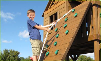 The Creative Playthings Ridgemont Swing Set is a great value with many great features. This Play Set includes a 10' scoop slide, 5'x79' play deck, Clunhouse with Porch, Pinnacle Rock Wall, a 4 position swing beam, and so much more. The swing set includes a telescope, 2 sling swings, and a back-to-back glider with chain. This play set is constructed in the USA with Southern Yellow Pine which is preserved with NatureWood ACQ, a non-toxic wood treatment. Creative Playthings Swing Sets are easy to assemble (step-by-step instructions) and feature a limited lifetime warranty. This play set is intended for residential use only. Any use in a public or commercial setting constitutes as misuse and voids the warranty.