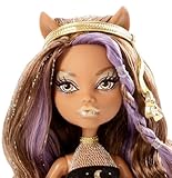 Clawdeen Wolf doll looks fabulous in an over-the-top outfit adorned with dazzling golden accessories.