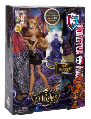It’s time for a dance party — Monster High style. The ghouls of Monster High are all dolled up in genie-inspired fashions, as featured in their frightfully fun new movie Monster High 13 Wishes. Clawdeen Wolf doll looks furrociously fabulous in an over-the-top outfit adorned with dazzling golden accessories. She comes with a brush, doll stand, and lantern accessory to help create a boo-tiful night to remember.