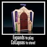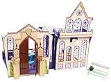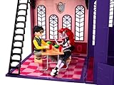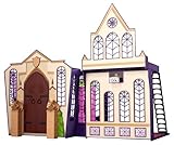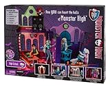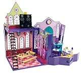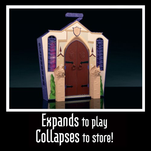 Monster High High School Playset: The hallways of Monster High are now alive with the ultimate accessory that looks just like the infamous school! This fold-up set opens to reveal six play areas. There’s the school entrance, where the cool ghouls gather. Say hello to the gargoyles that greet visitors to this iconic building as you swing the knockers and enter through the tall, double doors. Take class in the Mad Science Class Room, with two student desks, a lab cart and a blackboard with lesson. Creep through the iconic locker hallway; grab some school supplies from the lockers that really open and have working locks. “Fang” out at the table in the Creepateria, a scary cool spot for lunch or school events. Right up the stairs is the hallway, where the trophy case doubles as a DJ booth for those fangtastic dances that happen in the Creepateria-turned-dance-hall. Just hang the Skullette disco ball and other party decorations to quickly change the scene! Outside, ghouls can play hoops on the Casketball Court or ‘chill and thrill’ on the bleachers. There’s room for all the student bodies! Ghouls can play with and display all of their Monster High dolls, sold separately. Piece-count also includes 2 student desks, 1 bleacher, 1 Creepateria table, 1 casketball hoop, 2 notebooks, 1 binder, 2 bowls of food, 1 disco skull, 1 beaker with lid, 4 trophies and 1 sticker/label sheet that can be used to decorate the rooms for monsterific events.