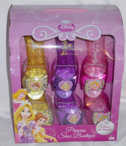 This adorable Disney Princess Shoe Boutique will thrill your young princess! Includes three sets of princess shoes: Rapunzel, Belle, and Sleeping Beauty.
