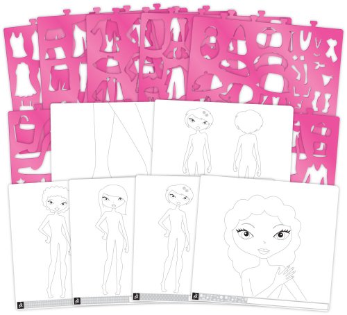 11451 Features: -Spiral bound sketch portfolio with plastic cover.-40 Fashion design sketch pages featuring 6 different page styles. Includes: -Includes color guide and instructions. Specifications: -7 Removable plastic stencil sheets with 100+ stencil designs.