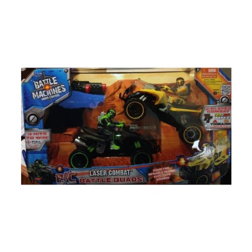 DescriptionYou'll have a lot of fun battling with these radio controlled laser combat battle quad bikes!! Features include: Two-pack allows you to battle with a friend or more with up to six vehicles simultaneously! Single player mode to perfect your laser battle skills with auto pilot feature. Laser Combat Multi-Player Mode: Eliminate opponent's shield levels by hitting them three times to win! Battle with up to 6 cars at once! Life Level Indicator: 3 LED's to indicate vehicle health. The first hit will turn off an LED and the vehicle will begin to shake, the second hit will turn off another LED, and the third hit will turn off the last LED and the vehicle will power down! Rapidly fires infrared beams with explosive sounds! 27/49MHz ABC triband radio controller allows up to six vehicles to be operated simultaneously! Fully functioning left/right steering and forward / reverse. Steering alignment pivot to correct any steering issues. Package includes: 1x Green R/C Quad Bike, 1x Yellow R/C Quad Bike, 2x 27/49MHz ABC Triband Radio Transmitter, and 2x Antenna