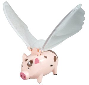 Who said pigs can't fly? This battery operated Flying Pig flaps it's wings and flies around and around in circles when suspended from the ceiling with the included mounting hardware. The Flying Pig measures 5″ long with a 12″ wing span and requires 2 “AA” batteries (not included).