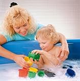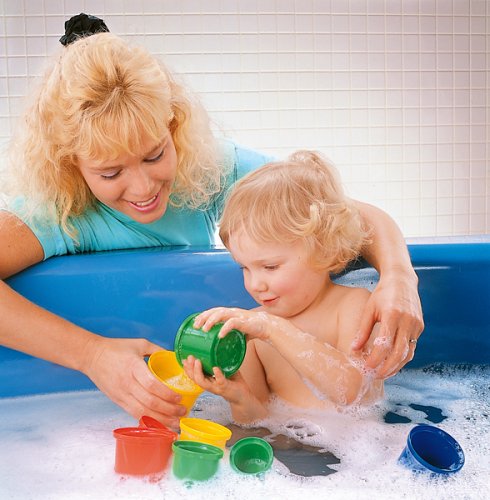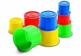 Huit gobelets aux couleurs gaies à empiler ou à emboîter. Jouet idéal dans l'eau ou sur la plage : pour remplir, écoper ou imprimer sur le sable grâce aux images en relief qui décorent le fond de chaque gobelet.