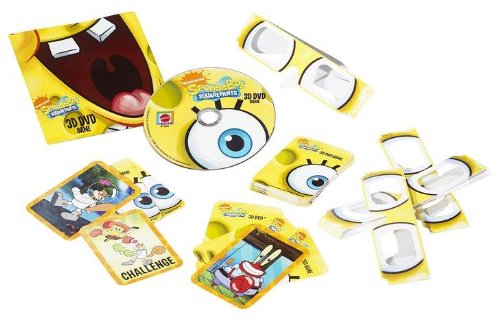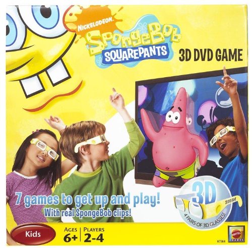 Spongebob Squarepants 3D DVD Game: Everyone's favorite sea sponge stars in a cool, 3D game that includes a DVD featuring real clips from the TV show, player cards featuring all your favorite characters from Bikini bottom, and 4 pairs of 3D glasses for a dancing, jelly-fishing, karate-chopping good time. Ages 6 and over, 2-4 players.