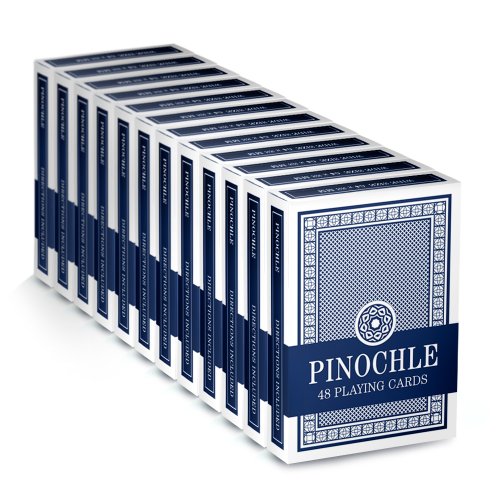 Enjoy these Pinochle decks made exclusively by Brybelly. This is a set of 12 blue decks. Directions for the game are printed on extra cards for beginning players. Often compared to bridge and chess, Pinochle rewards the player who can leap on opportunities and is not afraid of risk. Enjoy the fun and excitement of Pinochle with these great Pinochle decks from Brybelly.