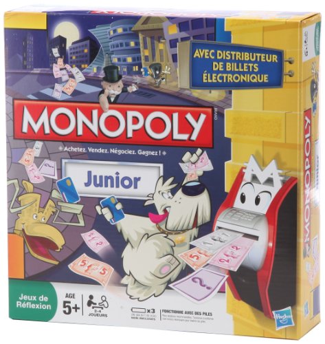 Toute la famille est rassemblée autour de cette nouvelle version du Monopoly de HASBRO. Le Monopoly Junior électronique intègre un distributeur de billets électronique. Très innovante, cette version comporte un plateau avec des propriétés, des maisons et des pions très amusants. Cette version Junior et électronique permet comme avec les autres éditions de devenir le plus riche en achetant et en construisant des maisons !