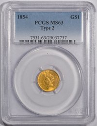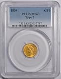 1854 G$1 Type 2 PCGS MS63 Gold Dollar
