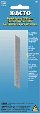 X-ACTO SNAP OFF KNIFE BLADES – Sharpness is just a snap away. Blade snaps off to provide multiple razor sharp edges. Comfortable one-hand operation with slide lock mechanism. Includes built-in snapper and storage compartment for extra blades.