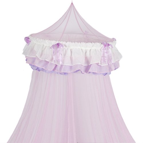 Give your child's bedroom a glamorous touch with this pink canopy. It features a pink feathered princess top, mounts easily to almost any ceiling and fits twin and full size beds. It has a 26″ top diameter and is about 8 ft in length. Hardware is also included.
