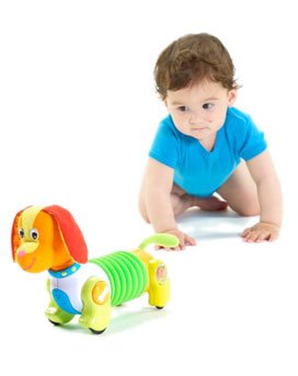 580-006 Features: -Inspire crawling Tiny Love, has created Follow Me Domino.-Motorized self-rolling puppy that engages baby and stimulates physical movement and interaction.-Multi-directional, accordion-shaped body that can be set to move in a straight line as well as in a circular motion.-Comes with two speed settings to adapt to baby's pace.-Cheerful pup also barks and plays musical tunes when in motion.-Bark after a minute or so to remind baby to play with him again. Color/Finish: -Excellent crawling motivator, colorful buttons that summon music and cheerful sounds.
