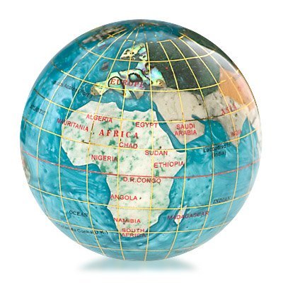 It may be small, but the Kalifano Bahama Blue 3-in. Gemstone Globe Paperweight is a world heavyweight champion. Perfect for your desk, tabletop, bookshelf, or mantle, it's heavy enough to hold down loose papers, bills, coupons, or receipts, and it also looks great on its own. This attractive 3-inch diameter globe features a variety of colorful semi-precious gemstones, which are meticulously hand-carved to represent land masses and bodies of water. This paperweight globe features brilliant blue ocean surfaces, a red equator, and gold-tone longitude and latitude lines. The names of various countries, continents, and oceans are labeled and easily readable. About Alexander Kalifano Over the span of four generations since 1912, family-owned Alexander Kalifano, a vertically-owned business, has been delighting customers with home decor products and jewelry collections. Headquartered in Las Vegas, the company offers unique, high-quality products at the best possible value. Crafted with a variety of hand-carved semi-precious gemstones. Brilliant blue oceans for a rich, vibrant surface. Perfect for a desk, mantle, bookshelf, table, dresser. Gold-highlighted latitude and longitude lines. Measures 3 diam. x 6H in..