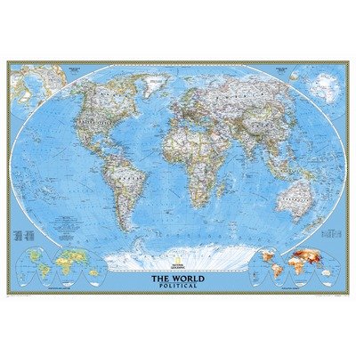 RE00620092 Map Type: Executive Enjoy the accuracy and beauty of the latest world map from the cartographers at National Geographic. This map features the Winkel Tripel projection to reduce distortion of land masses as they near the poles. Features include subtle border coloring on land, and prevailing winds and ocean currents at sea. Separate insets show the North and South Polar Regions, world vegetation and land use, and world population density. Features: -Three durable latex-coated panels. -Hang like wallpaper. Directions included. -Made in the USA.