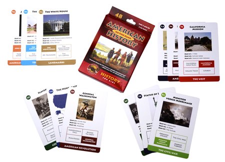 Easy to learn Go Fish game makes American history fun! 50 cards show famous people, landmarks, events, symbols etc from American history. Gather 4 cards within each category (ie Colonial America, Civil War, and Westward Expansion) and collect as many sets as you can! Includes rules for other games that reinforce timelines and geography. Made in China, ages 4+.
