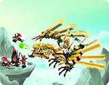 Lloyd, the golden ninja, has summoned the powerful Golden Dragon into an epic stand-off against Lord Garmadon's minions! Attach Lloyd onto the Golden Dragon and soar into battle! Avoid the launching catapult attacks with the huge extending wings! Fire the dragon sphere! Harness the power of the Golden Dragon to send Lord Garmadon's soldiers back underground!