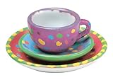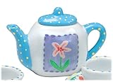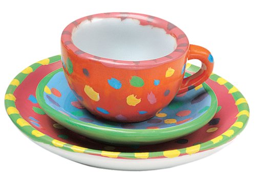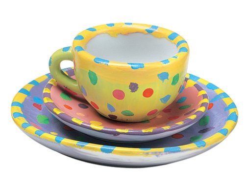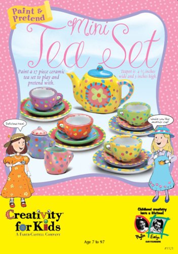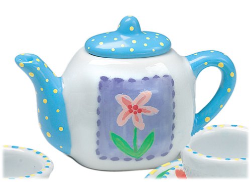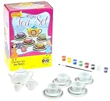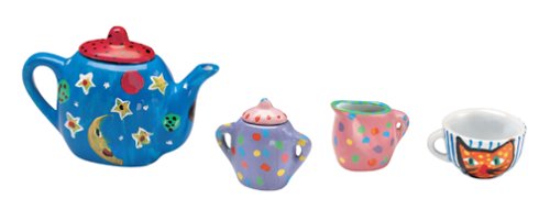 One lump or two? This exquisite high-quality Paint & Pretend mini tea set lets you have tea for up to 4 people. Personalize your set with the included 8-cup ceramic paint strip (add a few drops of water to dilute it). Can be used with real food and beverages if paint is used away from cup rim and on the outside of plates. This Oppenheim Toy Portfolio award-winning set is a timeless and universal activity enjoyed by children and adults alike. The set includes 4 cups, 4 saucers, 4 plates, teapot, creamer, sugar bowl, ceramic paint and a brush. Made of ceramic. For ages 7 and up. Made in USA. 3Hx7Wx10L”.