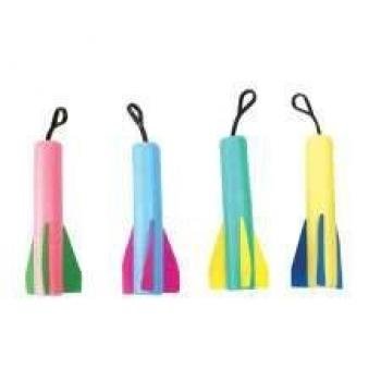 6 inches long, this foam rocket has an elastic pull back finger loop for launching.