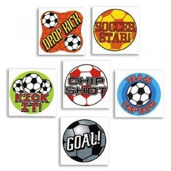 Soccer ball tattoos are easy to put on and easy to wash off! Non-toxic, temporary tattoos are 1 3/8″ and come in fun soccer ball shapes with sporty designs to help you get that goal and kick that chip shot. Fun party favors or treats for a soccer team.