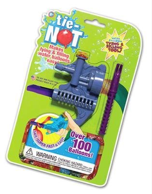 Water balloon fights are fun! With these little tools, getting ready for the water balloon fight can be just as fun! The easy filler connects right to your garden hose and has a spout small enough for a water balloon. The knotting tool makes balloon tying easy and fast! Don't spend all day preparing for your water balloon fight. Get these tools and get in the game! This package includes filler, knotting tool, and over 100 water balloons. Colors may vary Ages 8+ 10″ x 6″ x 1.75″