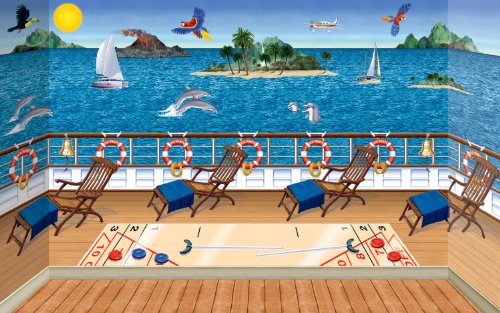 Tropical Ocean Paradise Scene Kit contains: (1) Ocean & Sky Backdrop, (1) Cruise Ship Deck Backdrop, (1) Cruise Ship Deck Chair Props Add-Ons, (1) Cruise Ship Deck Props Add-Ons, (1) Tropical Cruise Props Add-Ons. Decorations can be hung with adhesive or pins (not included). How to install the Scene Kit: Choose your space. Install Backdrops (included). Finish off your scene with Add Ons (included) Add-Ons will require scissors to cut pieces from plastic sheets. Please Note: The kit pictured above does not show every included add-on due to space limitations.
