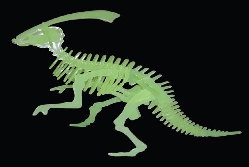 The Dinosaur, is a 3D Jigsaw Glow in The Dark Construction Kit, contains 39 pieces. Parts are pre-cut. Just match Letters, and the parts interlock. No glue necessary. Come in a box with instructions. It's a challenging, educational and creative activity for ages 5 and up. Can be great for display when assembled.