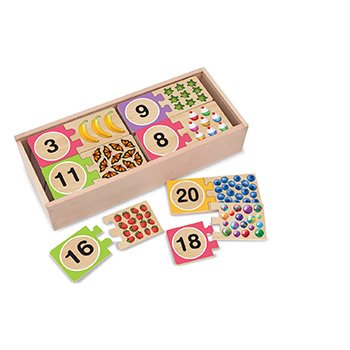 Match these wooden puzzle pairs to make mastering numbers as easy as 1, 2, 3. Groups of objects illustrate numbers 1-20, and the puzzles are self-correcting–each piece has only one match that fits–so children can play independently and learn all the while. Recommended Ages: 4+ years.
