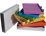 - Seven, heavy duty colored cardboard boxes each with a take-out cardboard sheet