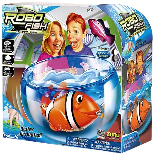 Single Robo Fish aquatic robot toy with a fish tank play set. Drop Robo Fish into a bowl of water and it springs to life, swimming in a way that's almost indistinguishable from a real fish. Remove it from water and dry to deactivate, ready for use next time. Each pack contains one Robo Fish with batteries, spare batteries and a clear plastic Robo Fish bowl. Features •Aquatic robot play set •As seen on TV •Robo Fish activates in water •Swims like a real fish •Comes with spare batteries •Includes plastic fish bowl •Eight Robo Fish designs available, one selected at random in this pack