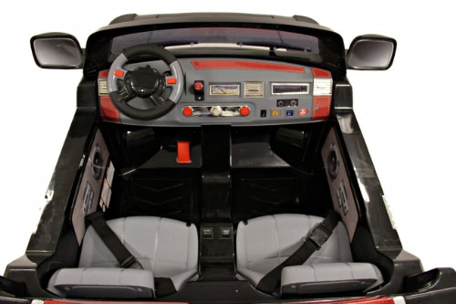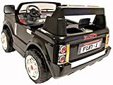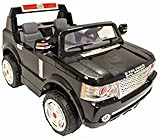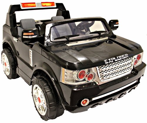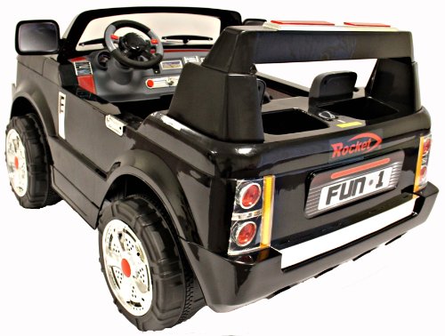 DescriptionThe colossus of the powered ride on world, the Rocket Explorer Black Ride on Jeep is certainly a show-stopper, packing impressive Jeep-style looks and able to deal with tough terrain using its powerful double motor. This is the latest model to arrive in the UK – a power busting 24v twin seater – designed to blow every other ride-on out of the water with it's looks, style, sheer size and power. We challenge you to find another vehicle with spec as high as this, it's simple you won't as it doesn't exist! Exclusive to Fun4Kids for Christmas 2012 – they won't last long! An easy to use remote control is included for remote driving, should team 'parent' decide their driving input is required from the control room. The front headlights are fully operational and an MP3 connection allows children to blast-out their favourite tunes straight from any MP3 device – great features for the ultimate in realistic play driving. Please note the item may vary slightly from that pictured, the sticker configuration has changed slightly and may vary from that shown. Features: MP3 plug-in Fully functional parental remote control Double motors for extra power (2 x 35 Watt) 2 x 12v 7ah Batteries Forward and reverse gears Fully working lights Metallic black 1,2,3 easy assembly Switch start Foot accelerator Weight limit: 40kg High speed: 8km/h Reverse speed: 4km/h Suitable for ages 3+ Size: 140 x 97 x 72 cm