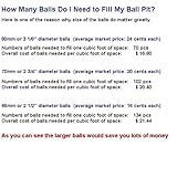 ***** Beware of the less expensive 2.5″ balls, as you would need twice the count of the smaller 2.5″ balls in order to fill the exact same volume filled with 3.1″ balls. *****